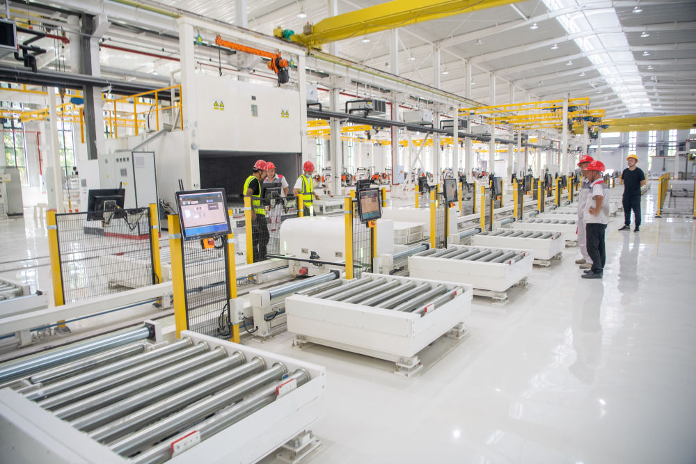 7月1日在合肥市新橋智能電動(dòng)汽車產(chǎn)業(yè)園蔚來第二工廠拍攝的新能源汽車生產(chǎn)線。新華社記者周牧攝
