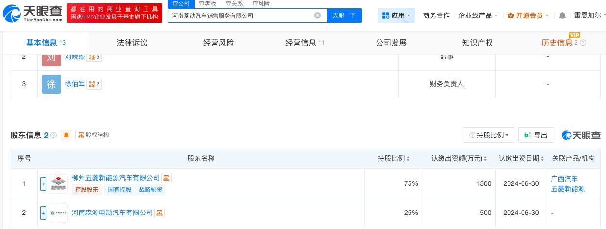 不僅如此,五菱新能源還與森源電動(dòng)汽車合資成立了河南菱動(dòng)汽車銷售服務(wù)有限公司,分別持股75%和25%。該公司成立于2024年,經(jīng)營范圍為新能源汽車整車銷售、汽車銷售等,五菱新能源為控股股東。
