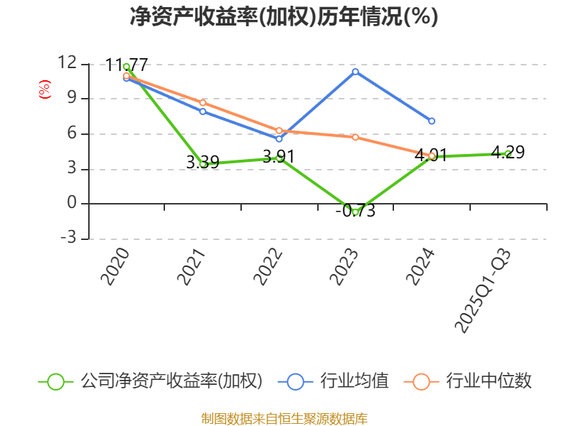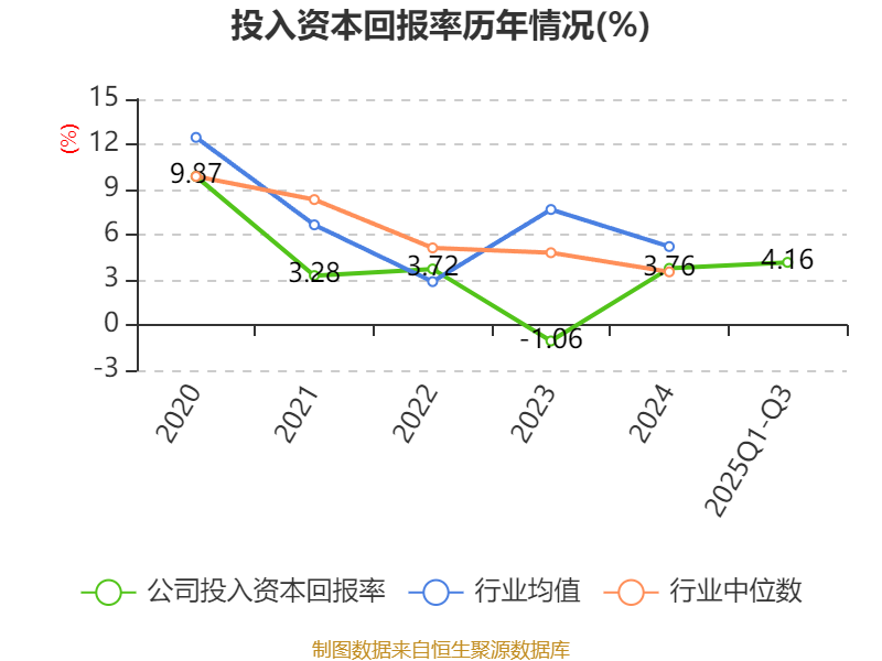 盈利能力方面, 2025年前三季度公司加權(quán)平均凈資產(chǎn)收益率為4.29%,同比上升1.05個(gè)百分點(diǎn)。公司2025年前三季度投入資本回報(bào)率為4.16%,較上年同期上升1.13個(gè)百分點(diǎn)。
