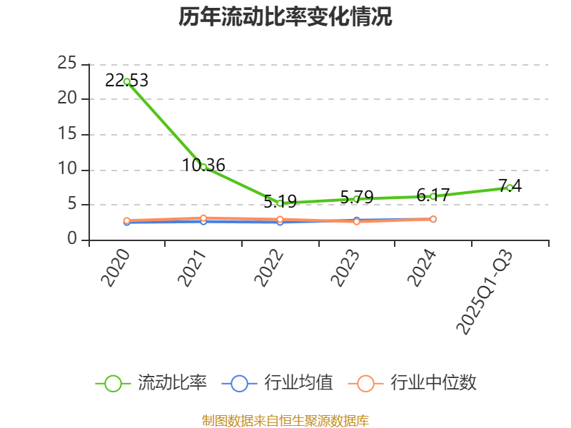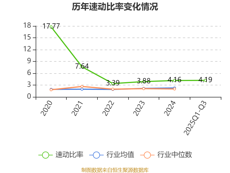 2025年前三季度,公司流動比率為7.4,速動比率為4.19。