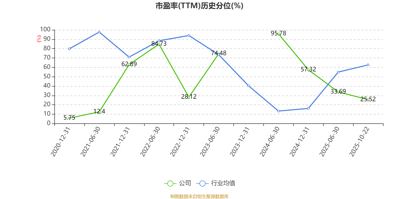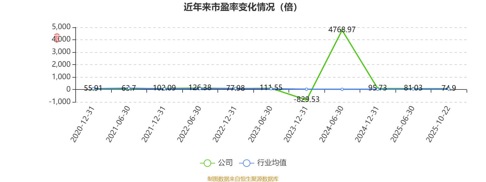 市盈率、市凈率為負(fù)時(shí),不顯示當(dāng)期分位數(shù),會導(dǎo)致折線圖中斷。