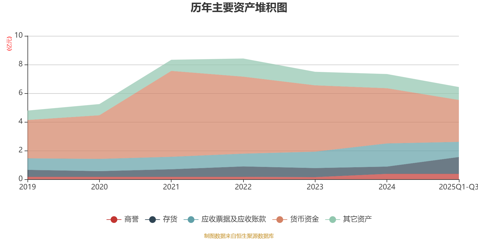 資產(chǎn)重大變化方面,截至2025年三季度末,公司存貨較上年末增加132.64%,占公司總資產(chǎn)比重上升11.34個百分點;貨幣資金較上年末減少24.05%,占公司總資產(chǎn)比重下降7.01個百分點;應(yīng)收票據(jù)及應(yīng)收賬款較上年末減少34.62%,占公司總資產(chǎn)比重下降5.6個百分點;商譽較上年末沒有變化,占公司總資產(chǎn)比重上升0.72個百分點。