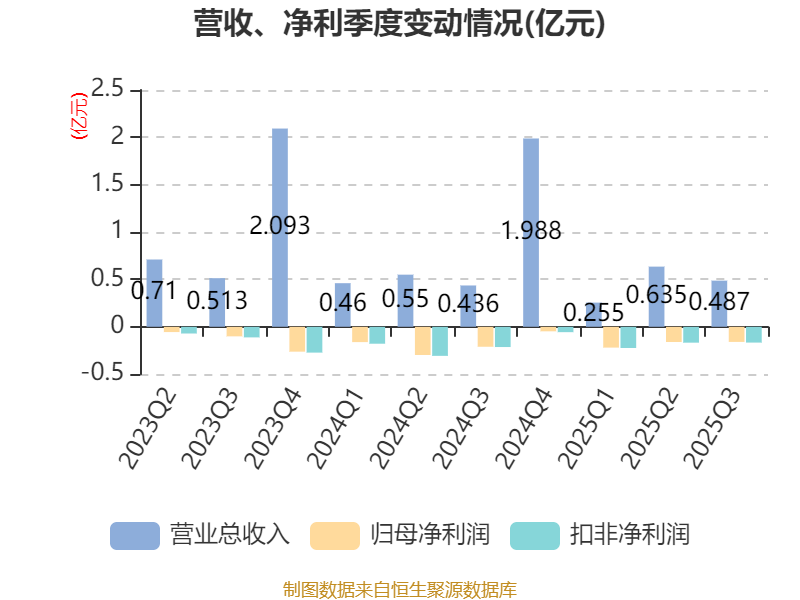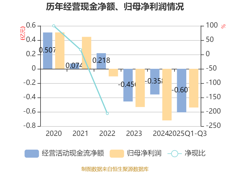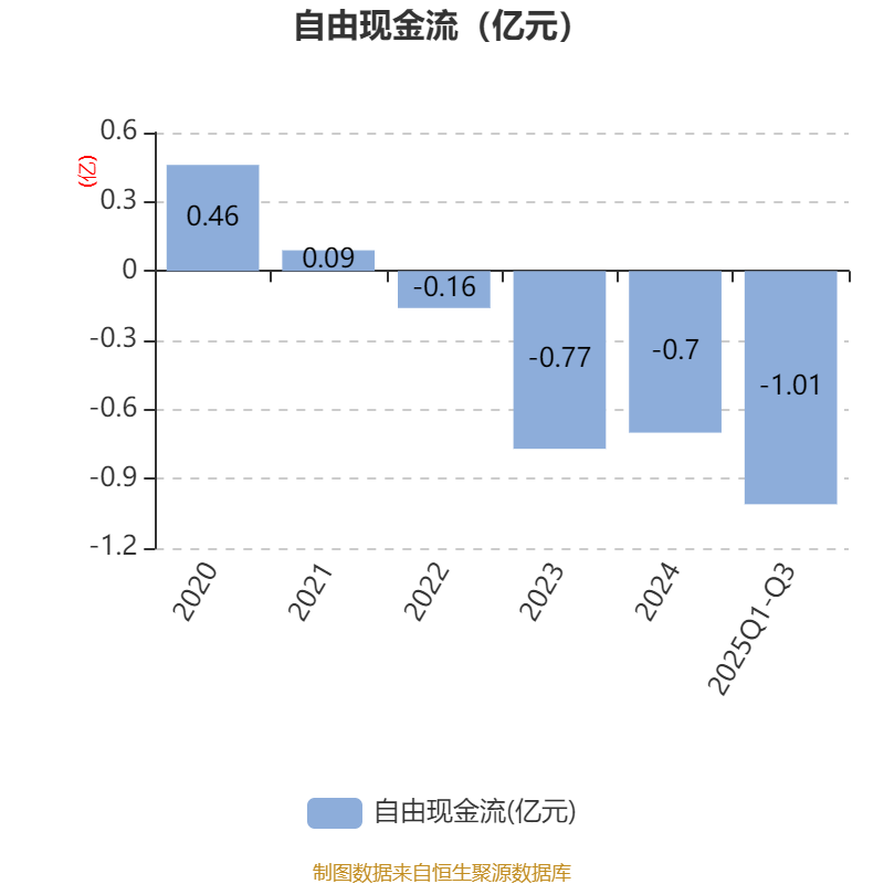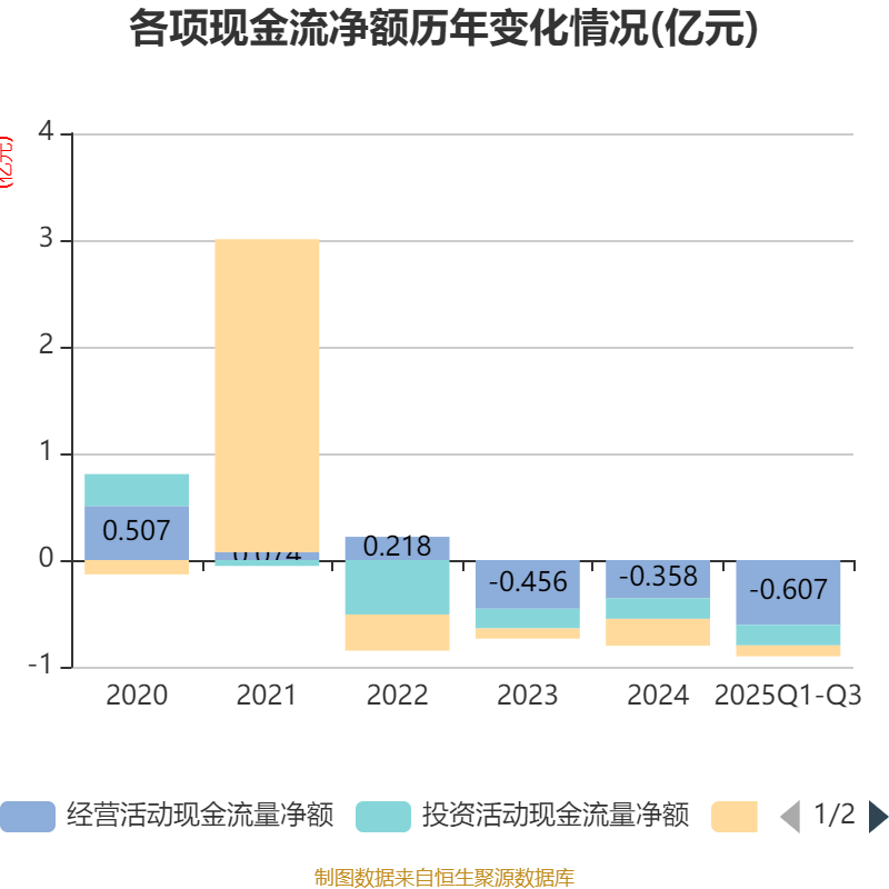 2025年前三季度,公司經(jīng)營活動現(xiàn)金流凈額為-6073.99萬元,同比增加2072.42萬元;籌資活動現(xiàn)金流凈額-1015.76萬元,同比減少89.01萬元;投資活動現(xiàn)金流凈額-1934萬元,上年同期為-59.17萬元。