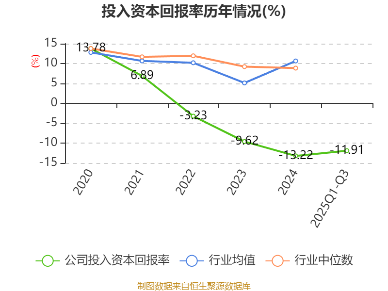 盈利能力方面, 2025年前三季度公司加權(quán)平均凈資產(chǎn)收益率為-11.65%,同比上升0.53個百分點。公司2025年前三季度投入資本回報率為-11.91%,較上年同期上升2.71個百分點。