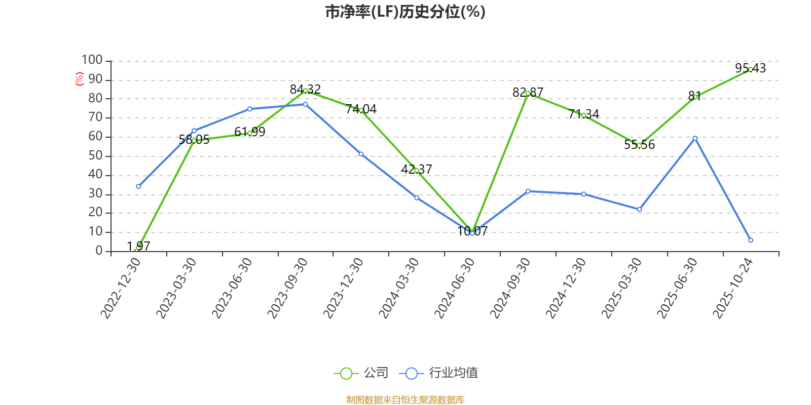 市盈率、市凈率為負時,不顯示當(dāng)期分位數(shù),會導(dǎo)致折線圖中斷。