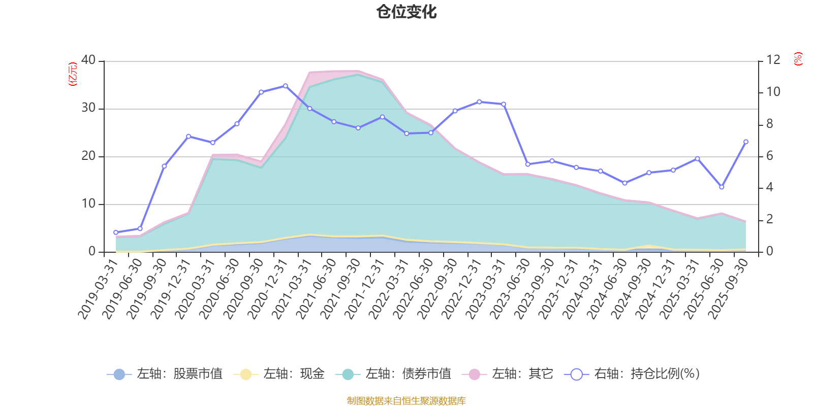 據(jù)定期報告數(shù)據(jù)統(tǒng)計,近三年平均股票倉位為5.97%,同類平均為19.03%。2020年末基金達(dá)到10.43%的最高倉位,2019年一季度末最低,為1.23%。