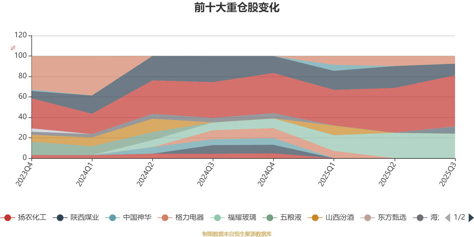 該基金持股集中度較高,近2年前十大重倉股集中度長期超過60%。截至2025年三季度末,基金重倉股分別是騰訊控股、福耀玻璃、美的集團(tuán)、貴州茅臺、長江電力。