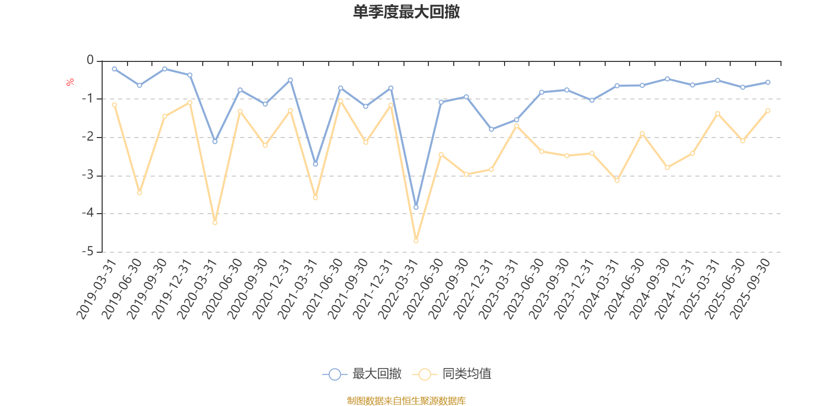 截至10月24日,基金近三年最大回撤為1.63%,同類可比基金排名6/552。單季度最大回撤出現(xiàn)在2022年一季度,為3.83%。