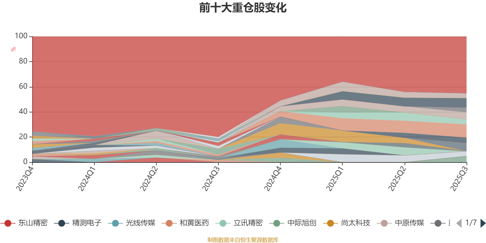 截至2025年三季度末,基金十大重倉股分別是浙江榮泰、新易盛、偉創(chuàng)電氣、勝宏科技、中際旭創(chuàng)、滬電股份、江淮汽車、騰訊控股、小鵬汽車-W、阿里巴巴-W。