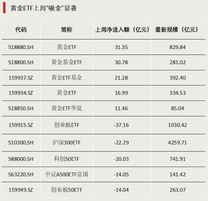 黃金ETF、上海金ETF今日小幅收跌。上周國際金價(jià)沖高回調(diào)后,10月20日至10月23日,兩類ETF合計(jì)凈流入超155億元,10月24日合計(jì)凈流出近20億元。