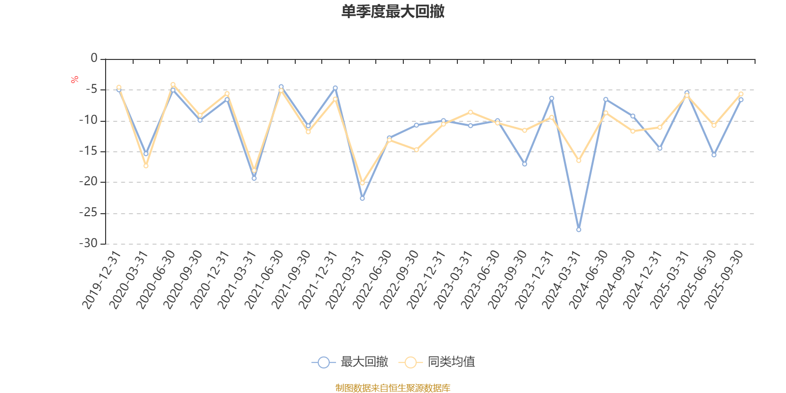 截至10月29日,基金近三年最大回撤為46.07%,同類可比基金排名452/513。單季度最大回撤出現(xiàn)在2024年一季度,為27.69%。