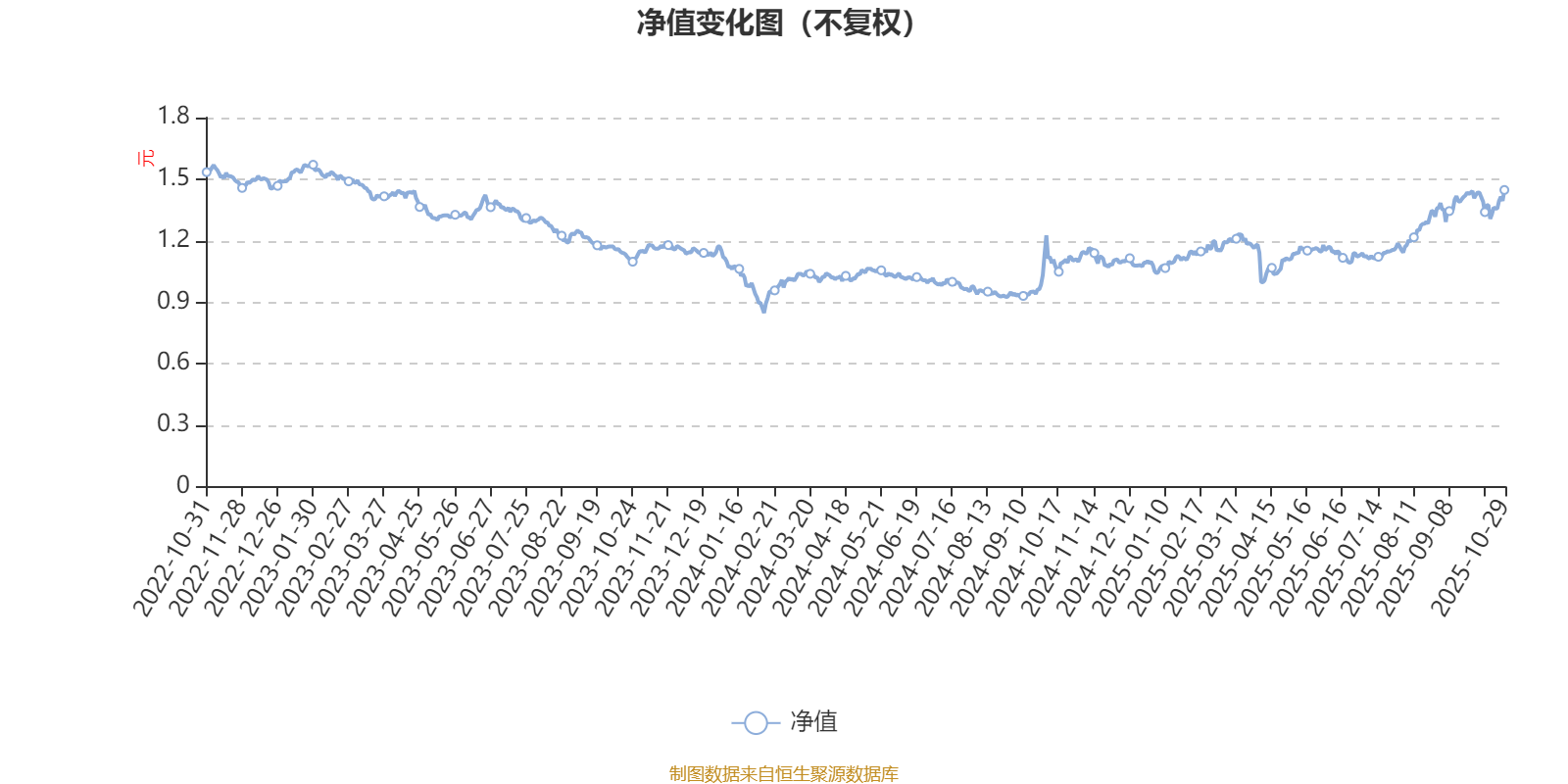 該基金屬于偏股混合型基金。截至10月29日,單位凈值為1.447元。基金經(jīng)理是周詩博,目前管理的3只基金近一年均為正收益。其中,截至10月29日,長城中小盤混合A近一年復(fù)權(quán)單位凈值增長率最高,達(dá)40.78%;長城研究精選混合A最低,為31.24%。