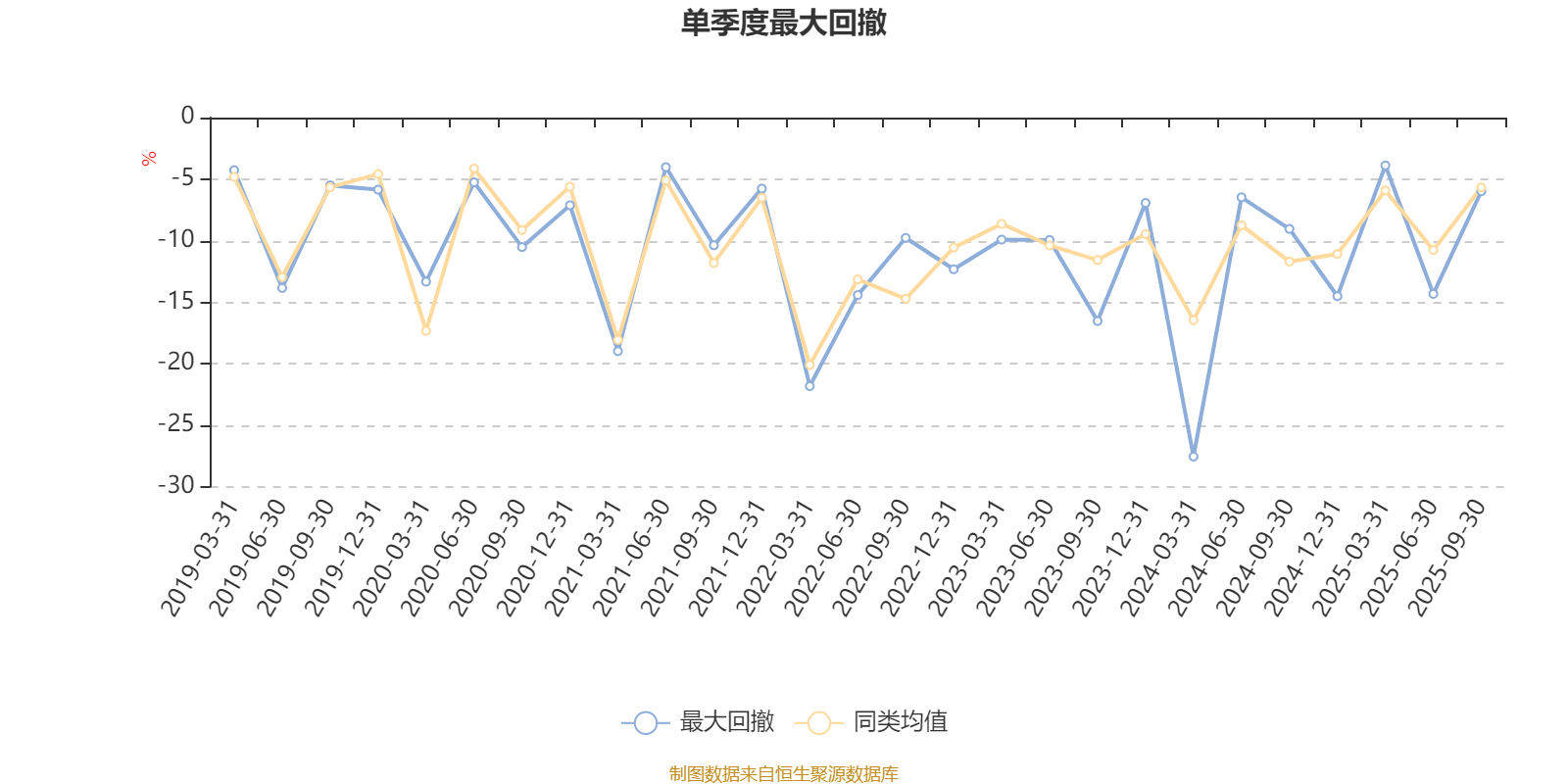 截至10月29日,基金近三年最大回撤為47.38%,同類可比基金排名469/513。單季度最大回撤出現(xiàn)在2024年一季度,為27.56%。