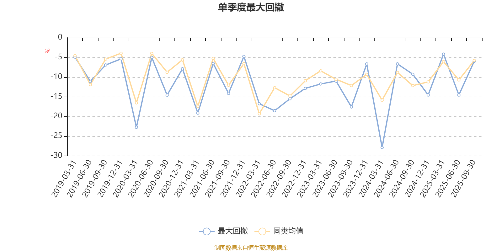 截至10月29日,基金近三年最大回撤為48.18%,同類可比基金排名318/363。單季度最大回撤出現(xiàn)在2024年一季度,為27.91%。