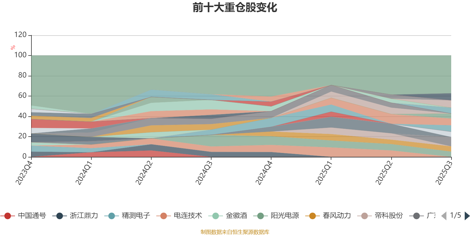 截至2025年三季度末,基金十大重倉股分別是廣東宏大、通潤裝備、華通線纜、振華股份、杰瑞股份、華豐科技、中際旭創(chuàng)、陽光電源、春風動力、宇通客車。