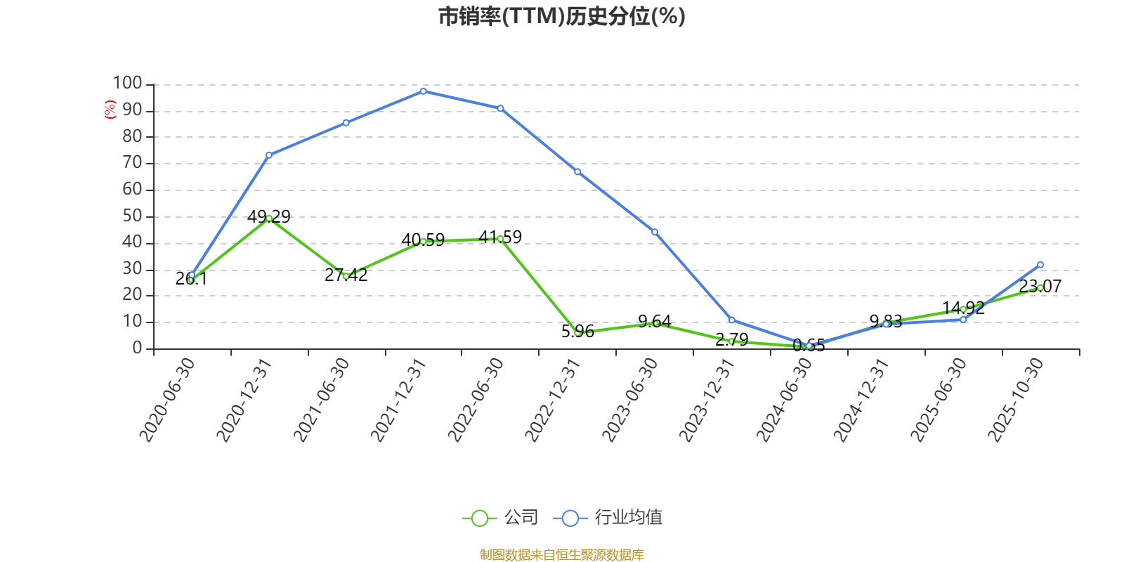 市盈率、市凈率為負(fù)時(shí),不顯示當(dāng)期分位數(shù),會(huì)導(dǎo)致折線圖中斷。