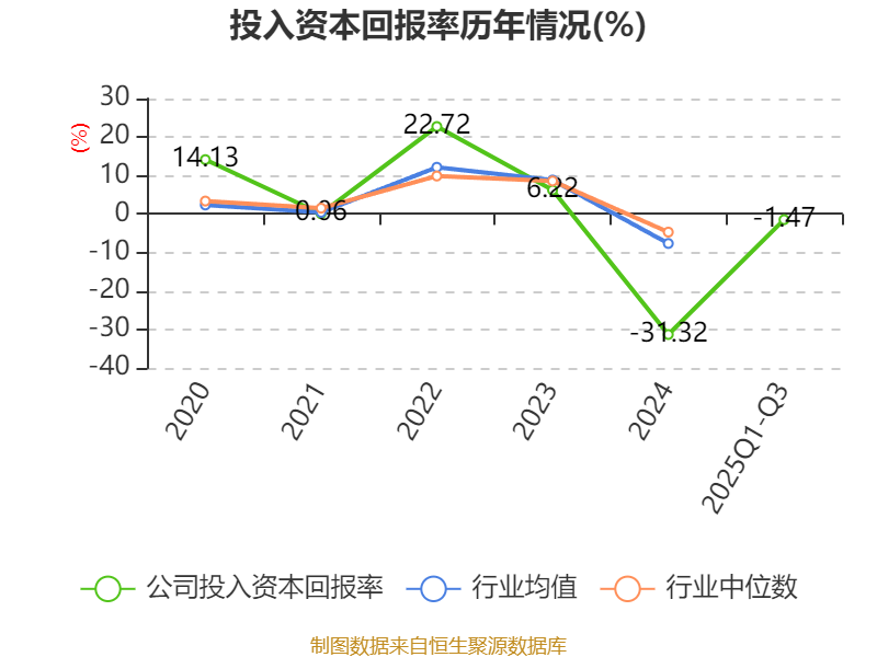 盈利能力方面, 2025年前三季度公司加權(quán)平均凈資產(chǎn)收益率為-17.63%,同比上升20.96個(gè)百分點(diǎn)。公司2025年前三季度投入資本回報(bào)率為-1.47%,較上年同期上升13.42個(gè)百分點(diǎn)。