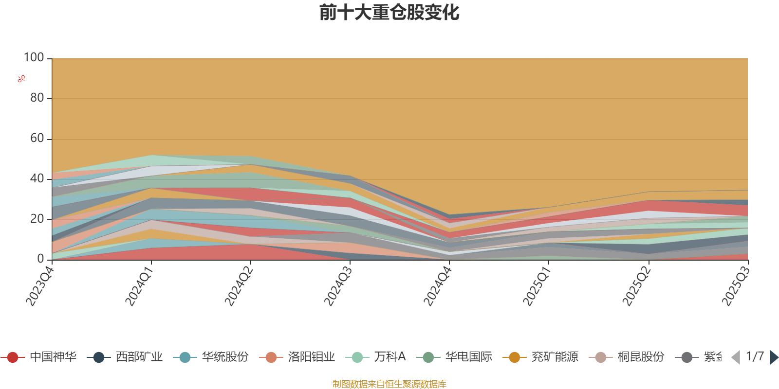 截至2025年三季度末,基金十大重倉股分別是寶豐能源、山東黃金、紫金礦業(yè)、中煤能源、中國聯(lián)通、山金國際、中國神華、招商輪船、海螺水泥、中國石化。