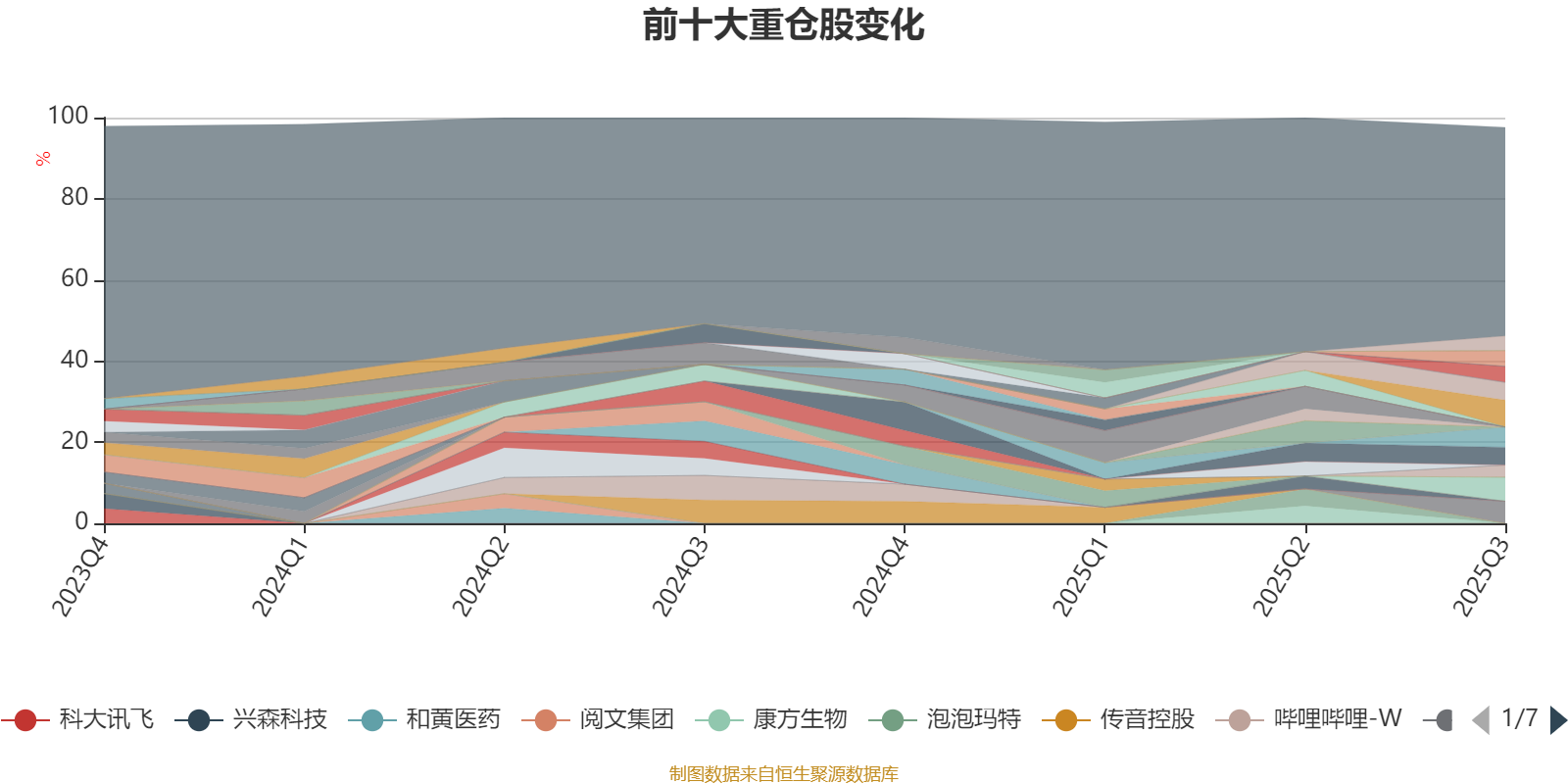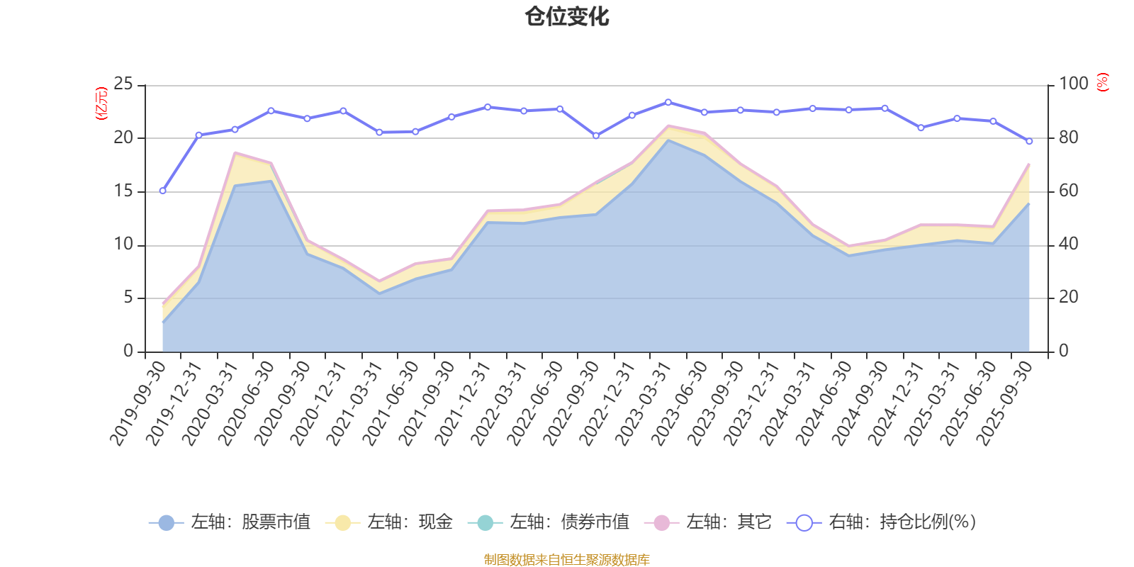 截至2025年三季度末,基金十大重倉股分別是阿里巴巴-W、寧德時(shí)代、恒立液壓、貝殼-W、寒武紀(jì)、華虹半導(dǎo)體、山東黃金、昆侖萬維、浪潮信息、中興通訊。