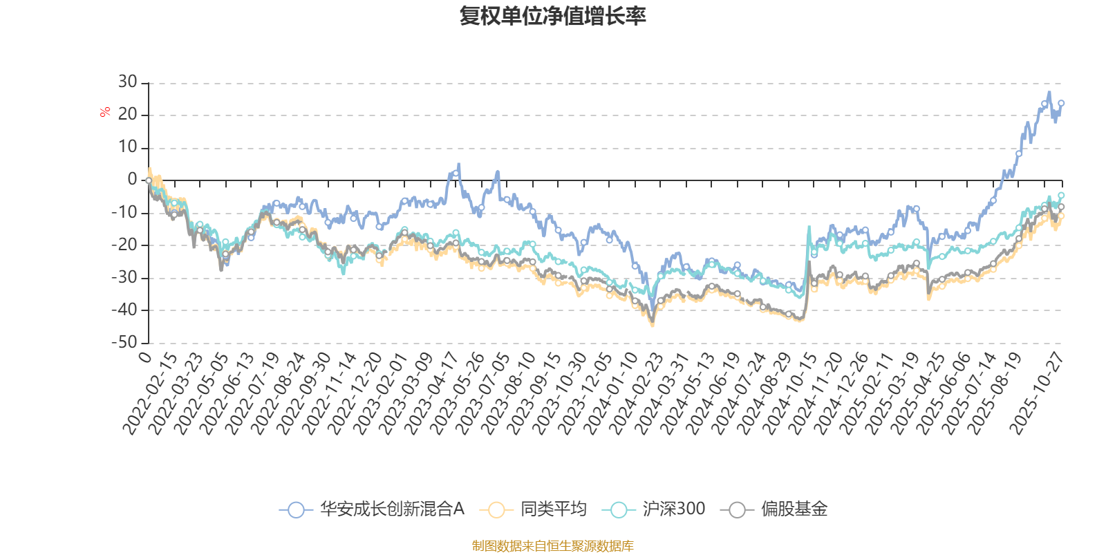 截至10月27日,華安成長創(chuàng)新混合A近三個(gè)月復(fù)權(quán)單位凈值增長率為23.85%,位于同類可比基金71/265;近半年復(fù)權(quán)單位凈值增長率為49.52%,位于同類可比基金38/265;近一年復(fù)權(quán)單位凈值增長率為51.47%,位于同類可比基金32/265;近三年復(fù)權(quán)單位凈值增長率為39.37%,位于同類可比基金49/253。