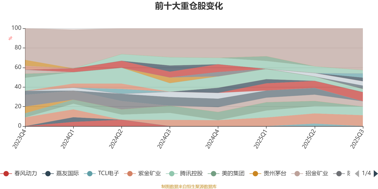 該基金持股集中度較高。截至2025年三季度末,基金十大重倉股分別是紫金礦業(yè)、寧德時(shí)代、騰訊控股、招金礦業(yè)、吉利汽車、巨化股份、阿里巴巴-W、中芯國(guó)際、中國(guó)宏橋、中國(guó)海洋石油。