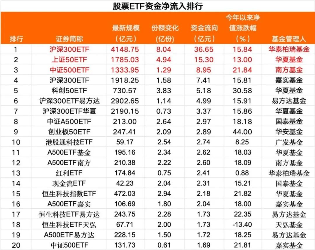 數(shù)據(jù)顯示,頭部基金公司旗下部分ETF凈流入步伐持續(xù)。