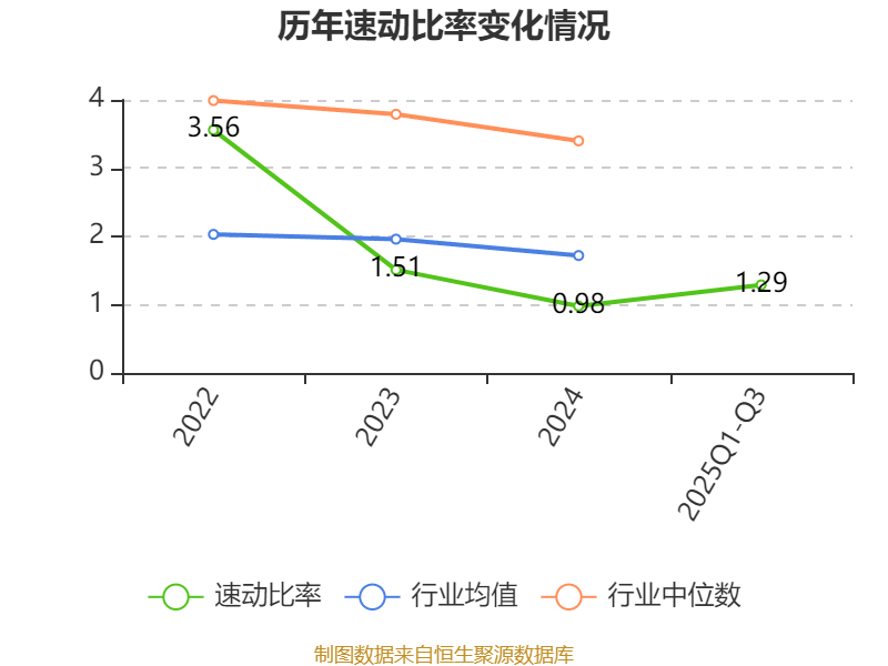 2024年,公司流動比率為2.2,速動比率為0.98。2025年前三季度,公司流動比率為2.3,速動比率為1.29。