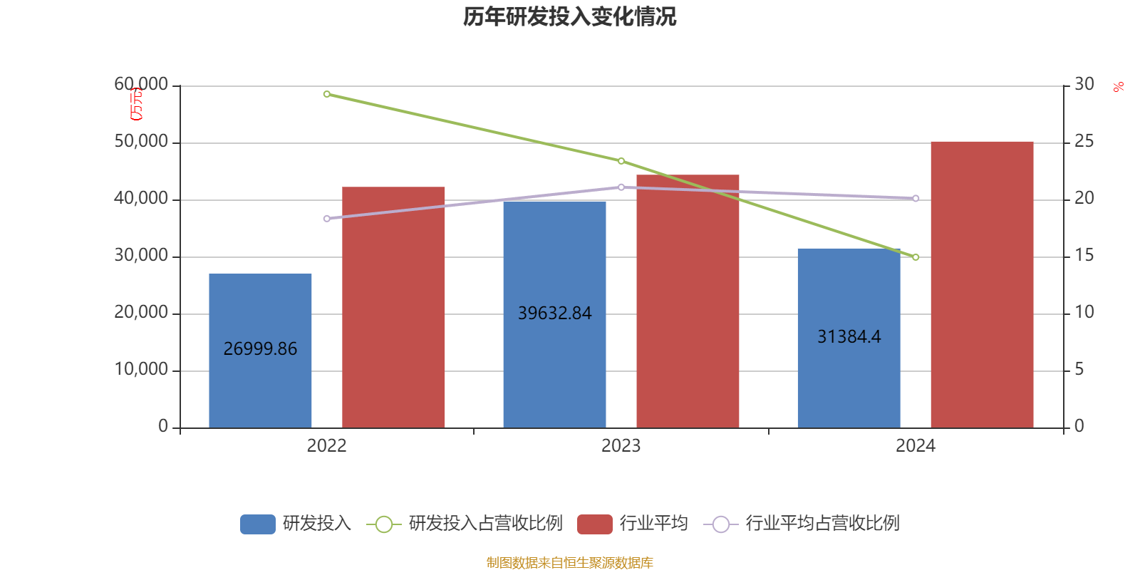 2024年全年,公司研發(fā)投入金額為3.14億元,同比下降20.81%;研發(fā)投入占營業(yè)收入比例為14.94%,相比上年同期下降8.44個百分點。