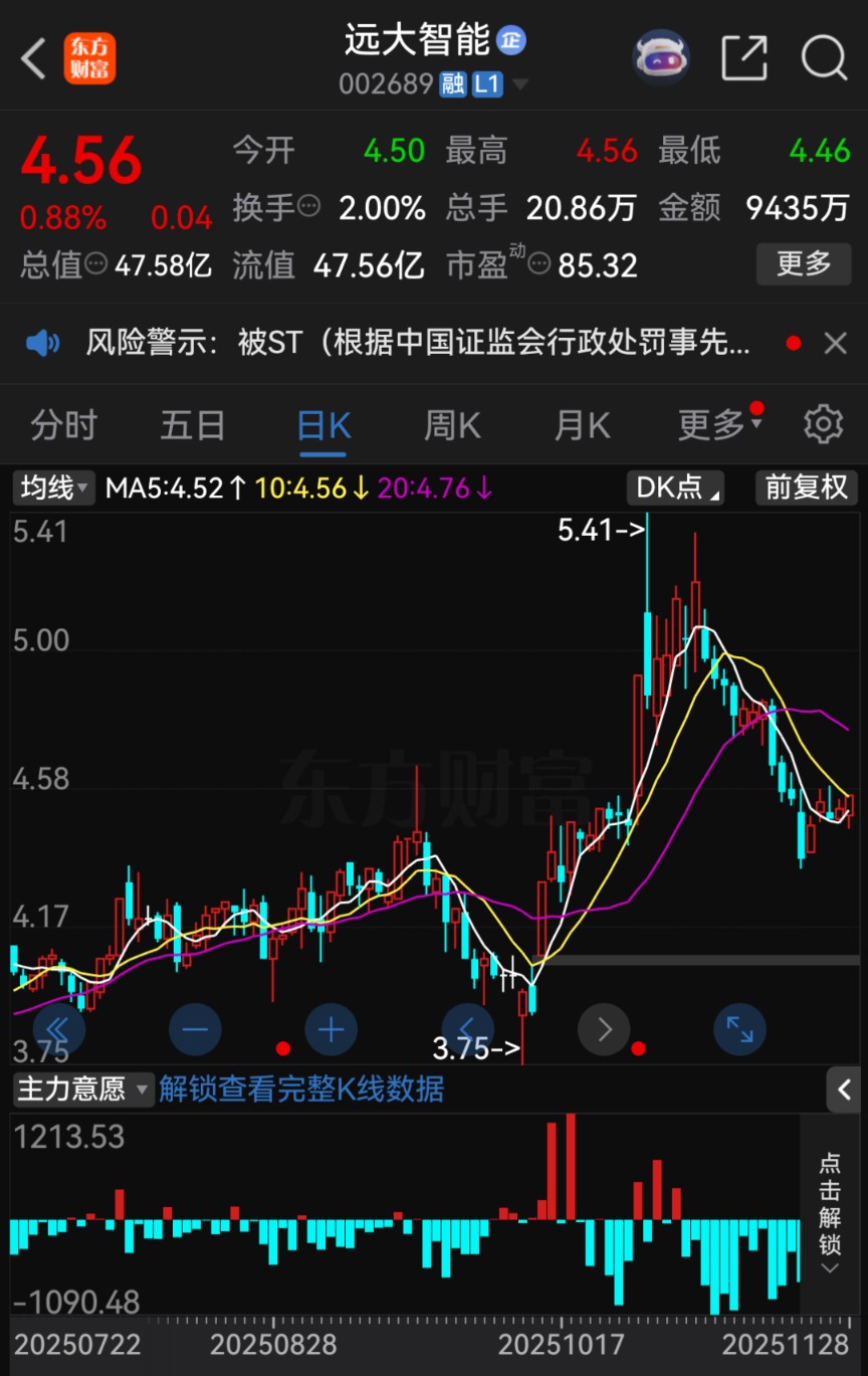 遠大智能將被實施其他風險警示