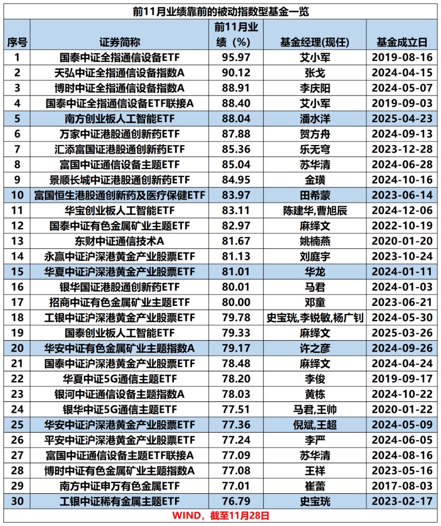 前11月指數(shù)型基金業(yè)績最牛超95%