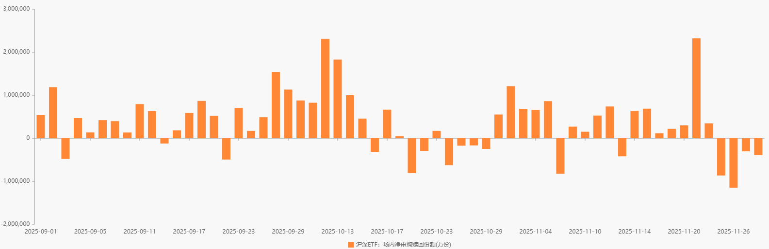 上周五(11月28日),東方財(cái)富Choice數(shù)據(jù)顯示,場內(nèi)股票型ETF凈贖回39.05億份;其中,滬市股票型ETF凈贖回24.26億份,深市股票型ETF凈贖回14.78億份。以最新凈值計(jì),上周五市場凈贖回47.51億元。