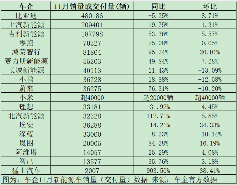 【導(dǎo)讀】車企11月“翹尾”行情降溫,比亞迪月度銷量仍未超50萬(wàn)輛