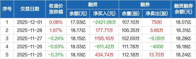 中銀證券融資融券信息顯示,2025年12月1日融資凈償還2421.08萬元;融資余額17.93億元,較前一日下降1.33%。