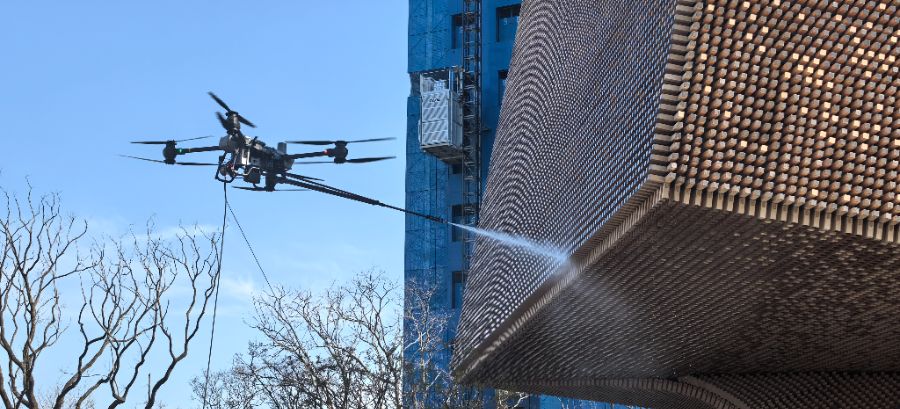 (無(wú)人機(jī)外墻清洗。企業(yè)供圖)