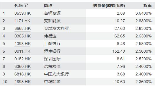 恒生港股通高股息低波動指數(shù)主要權(quán)重股