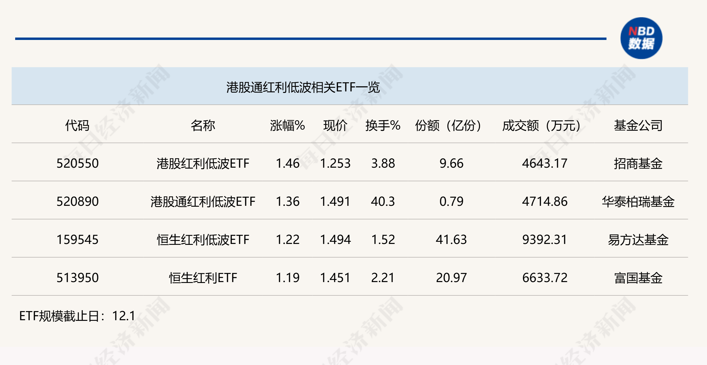 (原標(biāo)題:行業(yè)ETF風(fēng)向標(biāo)丨ETF交投遇冷,4只恒生港股通紅利低波ETF半日漲幅超1%)
