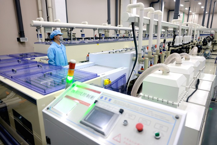 2025年10月22日拍攝的凱盛科技年產(chǎn)10萬片黃光AG玻璃項(xiàng)目生產(chǎn)車間。新華網(wǎng)發(fā)(劉晨攝)