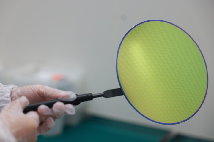 2025年5月22日,在安徽華鑫微納集成電路有限公司,工作人員展示一款晶圓產(chǎn)品。新華網(wǎng)發(fā)(劉晨攝)