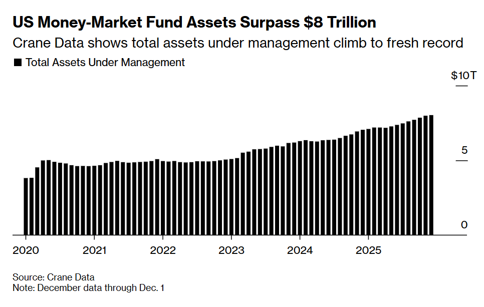 美國貨幣市場基金的管理資產(chǎn)規(guī)?,F(xiàn)已突破8萬億美元,這一行業(yè)憑借高收益率廣受投資者青睞,如今迎來里程碑時刻。