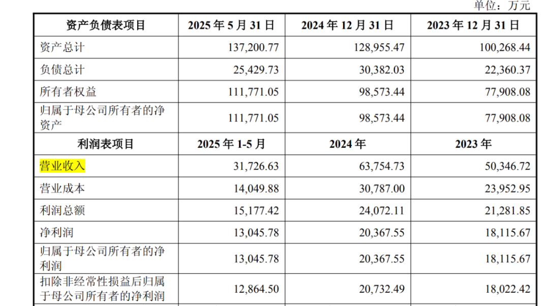 財務方面,2023年、2024年、2025年前5月的營收分別為5.03億元、6.38億元、3.17億元,凈利潤分別為1.81億元、2.04億元、1.30億元。截至2025年5月31日,茵地樂資產(chǎn)總計13.72億元,負債總計2.54億元,歸屬于母公司所有者的凈資產(chǎn)為11.18億元。