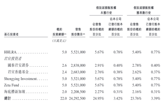不過,遇見小面仍然吸引一批知名機(jī)構(gòu)和產(chǎn)業(yè)公司成為其基石投資者。包括高瓴旗下HHLRA、君宜香港基金、Shengying Investmen以及海底撈新加坡等。