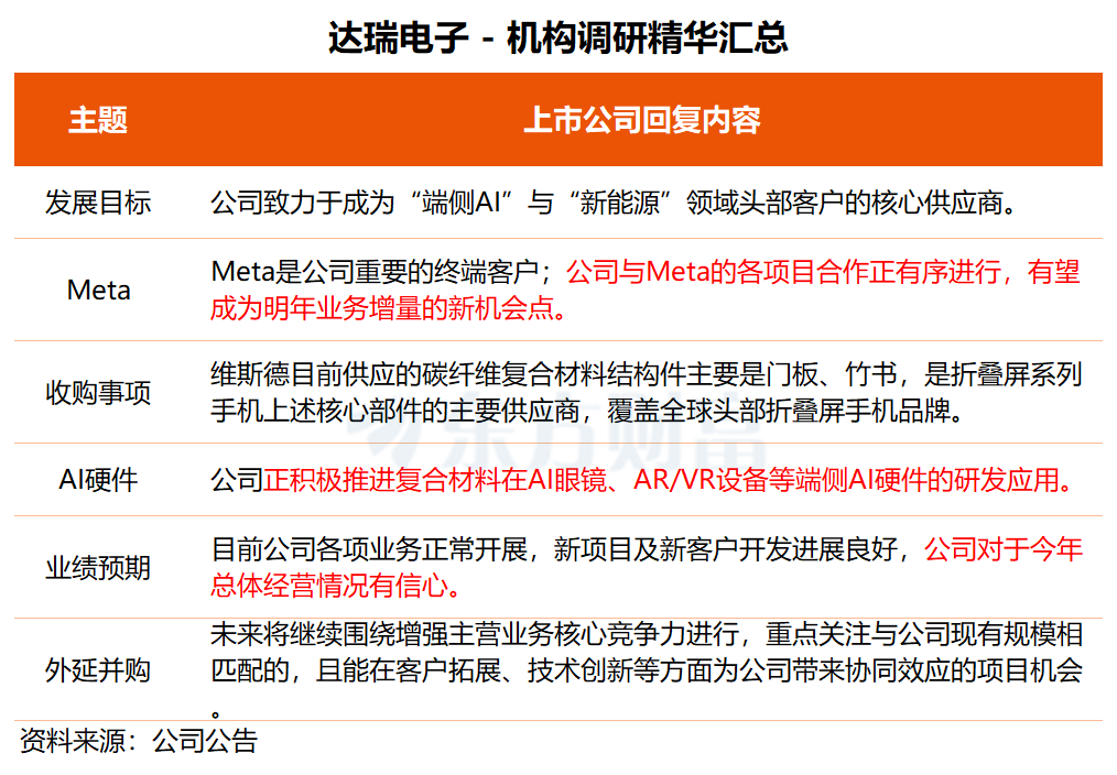 達(dá)瑞電子:與Meta合作項(xiàng)目有序進(jìn)行 有望成明年業(yè)務(wù)增量新機(jī)會(huì)點(diǎn)