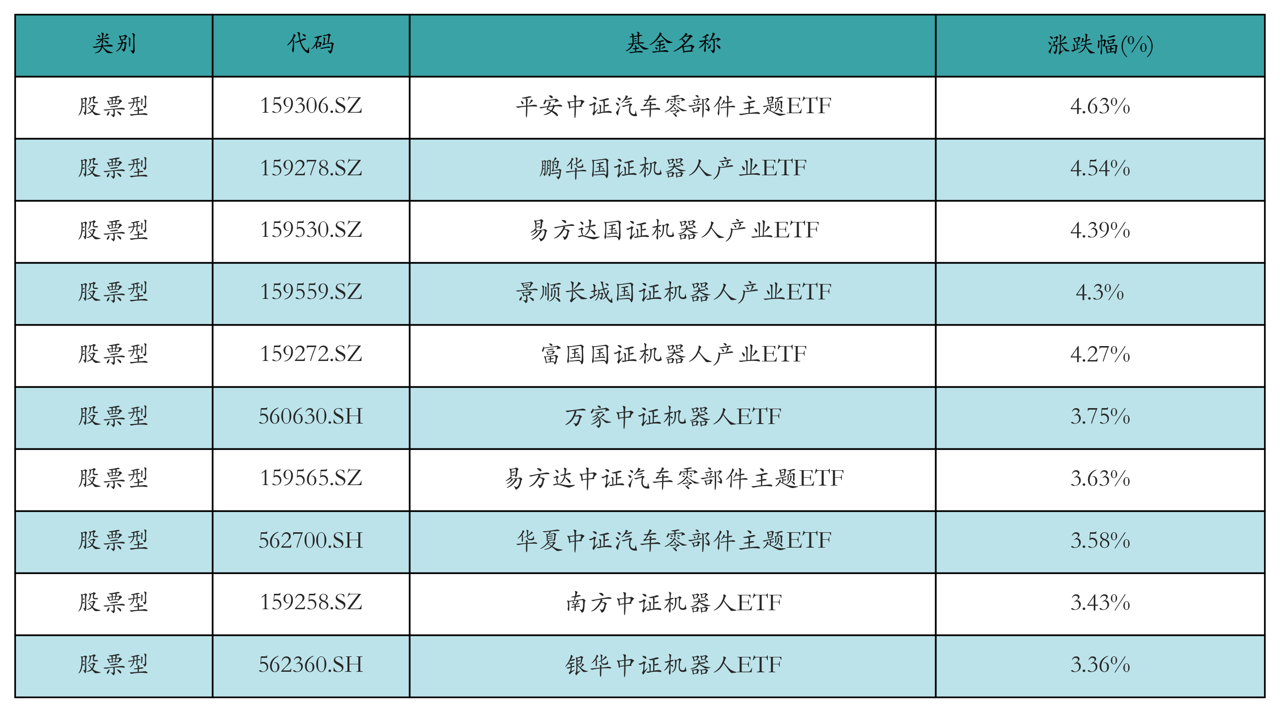 機器人ETF漲幅居前,機構:產(chǎn)業(yè)進入快速發(fā)展丨ETF基金日報