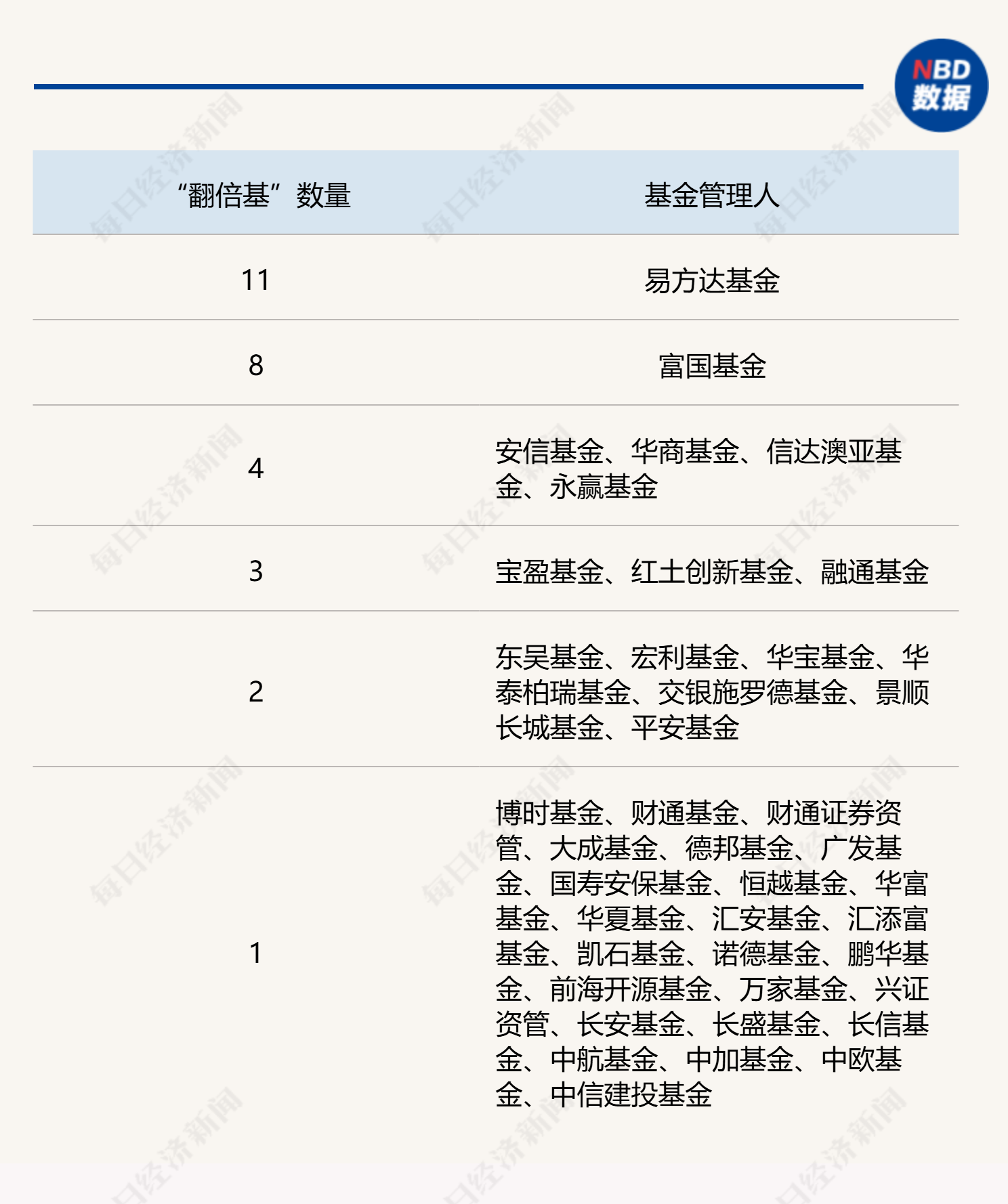 哪些公司“翻倍基”最多,哪些又一只都沒有?