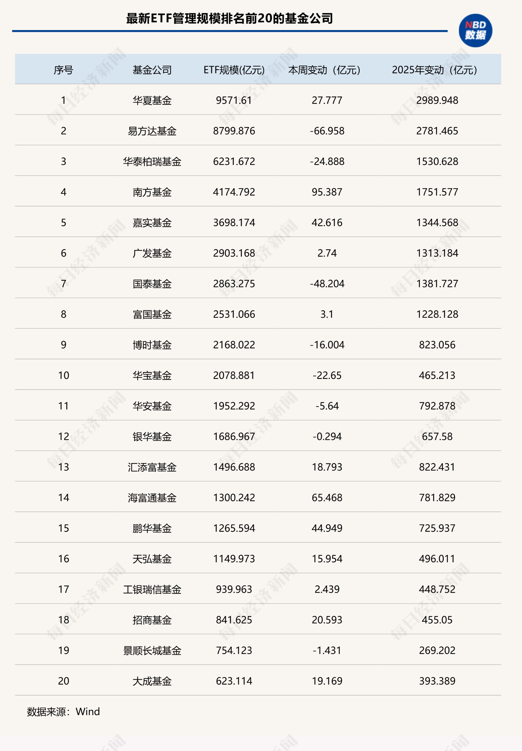 管理人方面,南方基金持續(xù)在中證系列寬基ETF發(fā)力,本周規(guī)模再度增加近百億元,2025年年底的沖刺勢頭甚至蓋過兩大ETF巨頭。