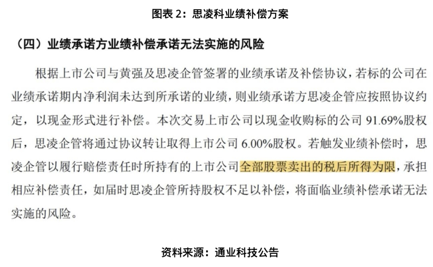 需特別注意的是,本次并購的業(yè)績補(bǔ)償機(jī)制頗為特殊。本次交易的業(yè)績補(bǔ)償方案設(shè)置了明確上限,即補(bǔ)償金額以業(yè)績承諾方所持上市公司6%股份的變現(xiàn)所得為限。若未來思凌科業(yè)績不達(dá)標(biāo),且通業(yè)科技股價(jià)出現(xiàn)下跌,業(yè)績承諾方的實(shí)際補(bǔ)償能力將大幅削弱。極端情形下,若上述股權(quán)的變現(xiàn)價(jià)值不足以覆蓋應(yīng)補(bǔ)償金額,該補(bǔ)償機(jī)制不僅無法對(duì)沖并購風(fēng)險(xiǎn),反而會(huì)因“業(yè)績不達(dá)標(biāo)→股價(jià)下跌→補(bǔ)償能力下降”的負(fù)向共振效應(yīng)持續(xù)放大損失規(guī)模,屆時(shí)通業(yè)科技及其中小股東的利益都將遭受損失。