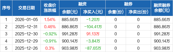 2026年1月5日建材ETF融資凈償還1.2萬元,融資余額885.66萬元