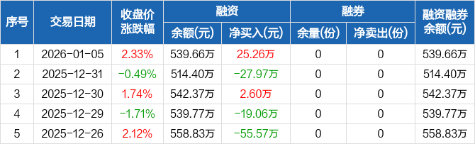 新能源車ETF融資融券信息顯示,2026年1月5日融資凈買入25.26萬(wàn)元;融資余額539.66萬(wàn)元,較前一日增加4.91%