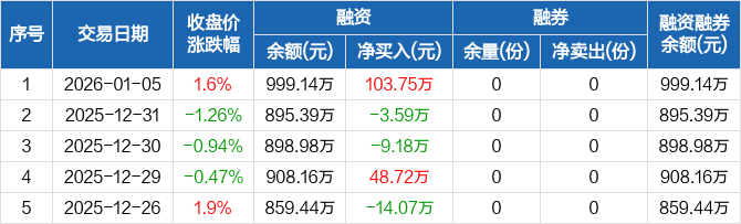 融資方面,當(dāng)日融資買入162.36萬元,融資償還58.61萬元,融資凈買入103.75萬元。融券方面,融券賣出0份,融券償還0份,融券余量0份,融券余額0元。融資融券余額合計999.14萬元。