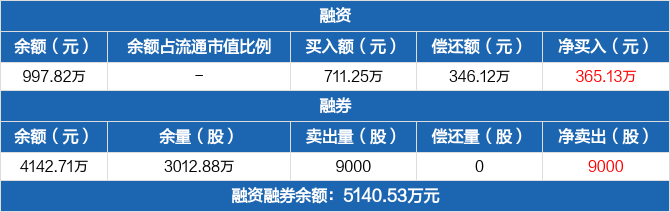 融資方面,當(dāng)日融資買入711.25萬元,融資償還346.12萬元,融資凈買入365.13萬元。融券方面,融券賣出9000份,融券償還0份,融券余量3012.88萬份,融券余額4142.71萬元。融資融券余額合計5140.53萬元。